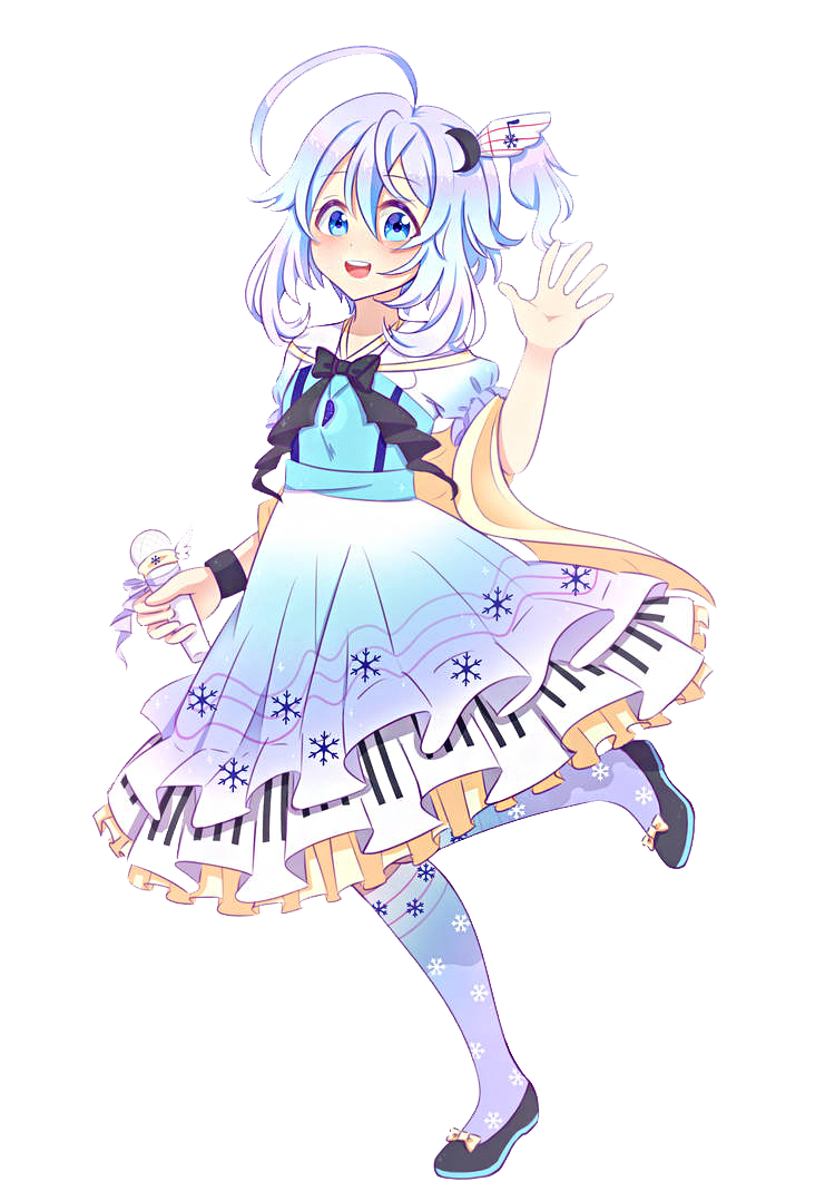 Her hair is iridescent opal, seeming to change colors depending on angle. It's a pastel mix of pale blues, purples and sea green, all over silvery white!Hair style: Fluffy, and wing like, the two curled strands come from the back of the head rather than being part of her bangsAhoge: Swoops over and covers part of her bangs